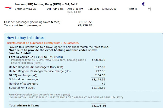 但是,後來發現,英航從倫敦直飛香港,竟然放頭等艙票,而且不是普通的多,幾乎每天都有,而且還是A380!