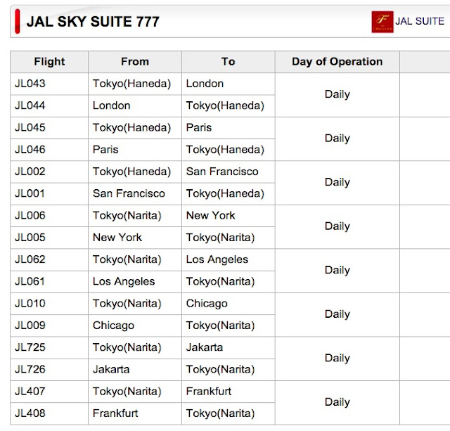 日航頭等艙值飛的路線如上圖,飛歐洲只有1.法蘭克福2.巴黎和3.倫敦