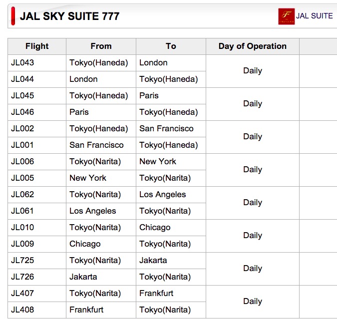 日航頭等艙值飛的路線如上圖,飛歐洲只有1.法蘭克福2.巴黎和3.倫敦