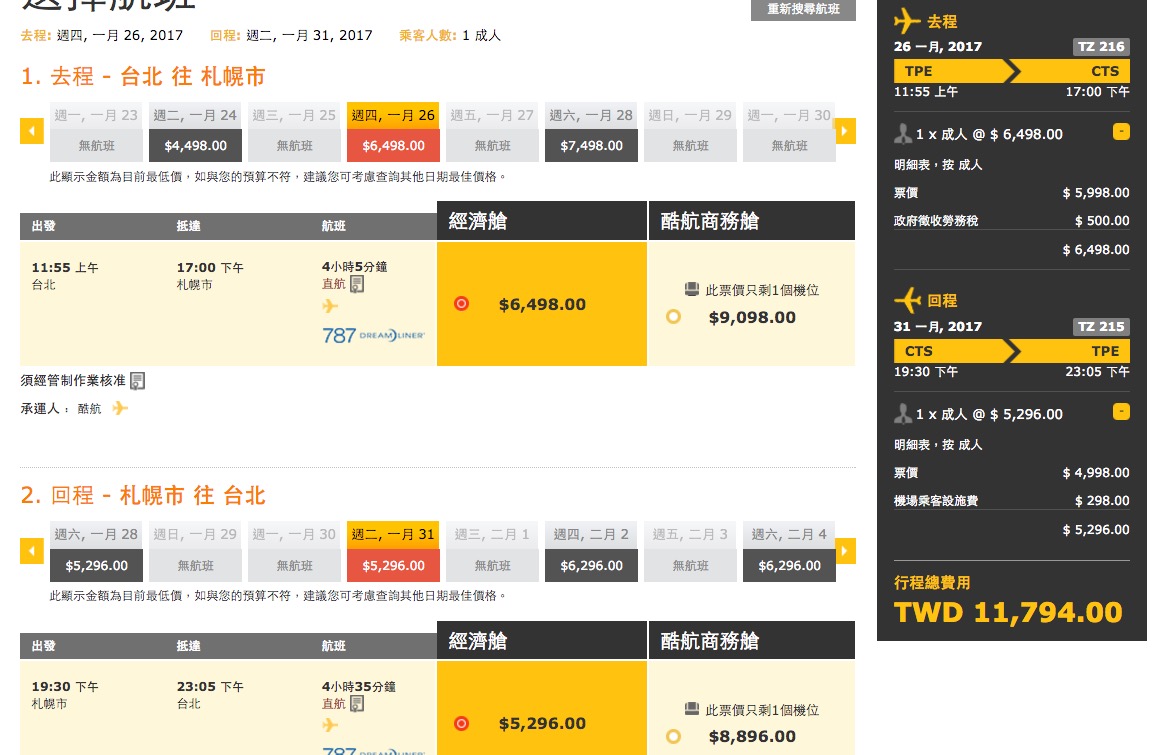 台北札幌的直飛價錢是11,794,說真的,超便宜!!!